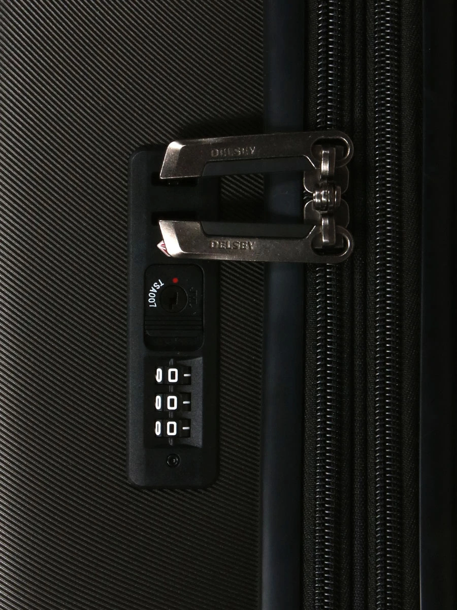 La valise Delsey Air Armour se tracte sans efforts à côté ou derrière soi avec sa poignée télescopique double tube et ses 4 doubles roues pouvant pivoter à 360°. Elle peut ainsi filer à vive allure sur vos pas aussi aisément dans les couloirs de l’aéroport que sur le chemin menant à la gare. Ses 2 poignées souples offrent une bonne prise en main pour la déposer dans le coffre d’un véhicule, par exemple. Enfin, pour des trajets placés sous le signe de la sérénité, elle possède une serrure TSA à code à combinaison chiffrée personnalisable ergonomiquement placée sur le haut de sa coque.
