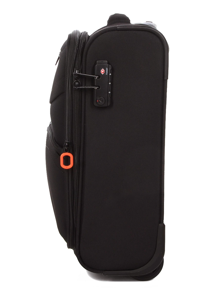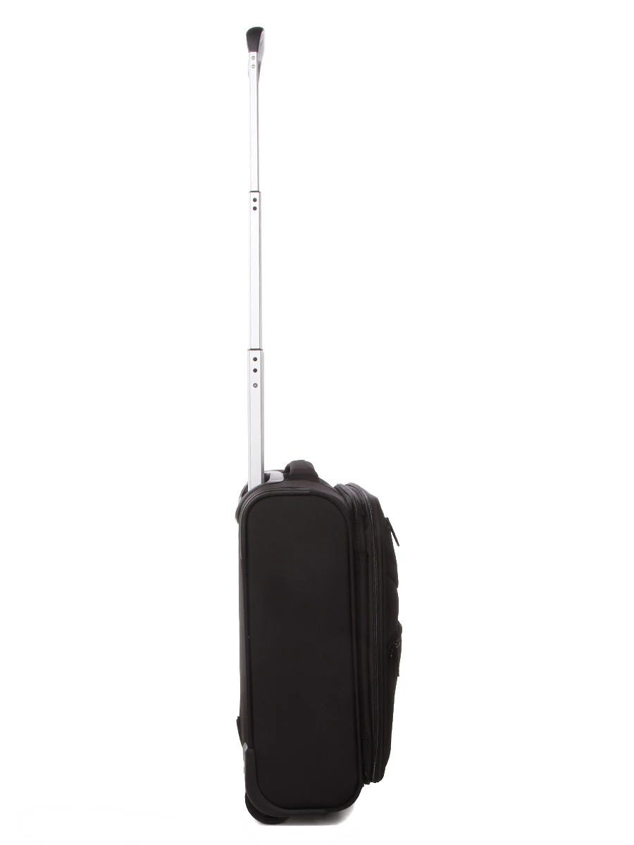 La valise Jump Moorea 2 – 45 cm – 2 roues accompagne de son petit gabarit les séjours de quelques jours. Très légère grâce à sa confection en polyester et aisée à manier, elle facilite les départs non planifiés. Acceptée en cabine par toutes les compagnies aériennes, elle permet de gagner du temps à l’enregistrement lors des déplacements en avion. Elle peut également être glissée sous un siège sur les vols de la compagnie EasyJet. Elle est dotée d’un soufflet d’extension qui augmente considérablement son volume, en lui faisant atteindre 38 litres et une profondeur de 22 cm. Son revêtement en polyester 500x300D Jacquard lui confère à la fois une bonne durabilité et un aspect élégant mis en valeur par ses lignes rondes. Notons que cette valise est garantie 5 ans par la marque.