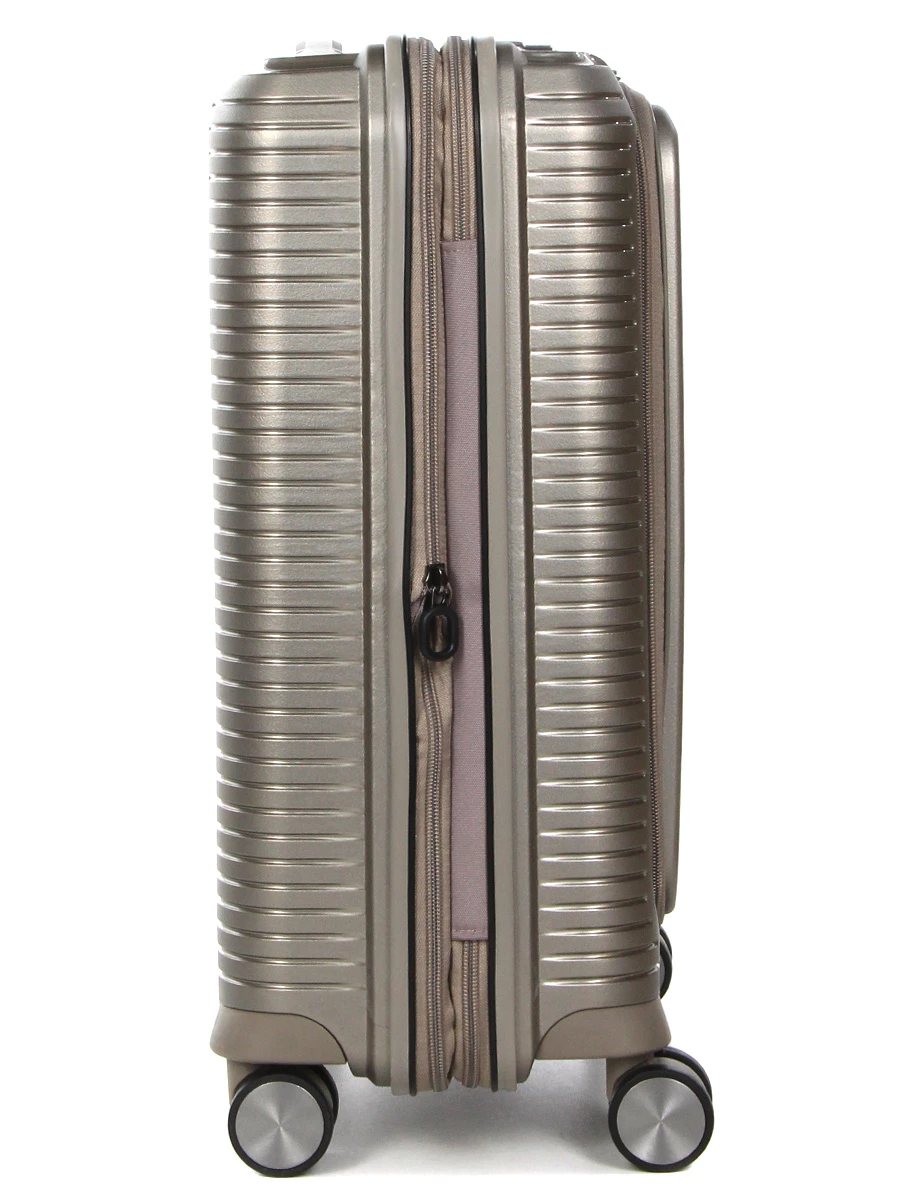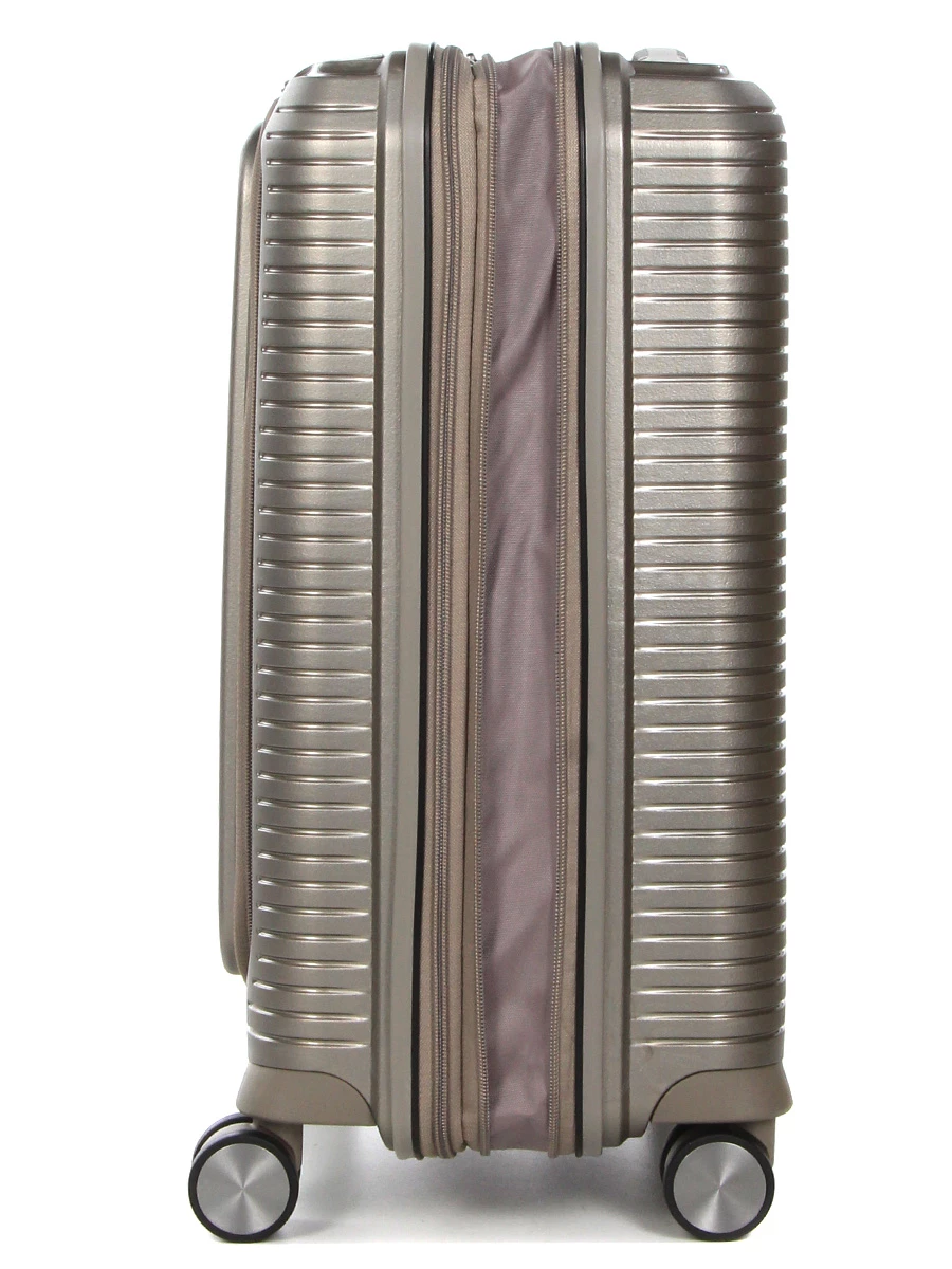 La valise Jump Sondo 55 cm – Poche Frontale est un bagage très complet qui permet d’emporter à la fois ses effets personnels et ses appareils électroniques pour des séjours de moins d’une semaine. Ses dimensions correspondent à celles acceptées en cabine par la plupart des compagnies aériennes telles que Air France et EasyJet. Extensible, elle gagne grâce à son soufflet 4 cm d’épaisseur et atteint 42 litres. Sa coque en polypropylène lui assure à la fois légèreté et excellente résistance aux chocs et à l’usure. Sa durabilité est confirmée par la garantie de 5 ans offerte par la marque. Avec ses lignes gravées, elle affiche pour ne rien gâcher un look attrayant.