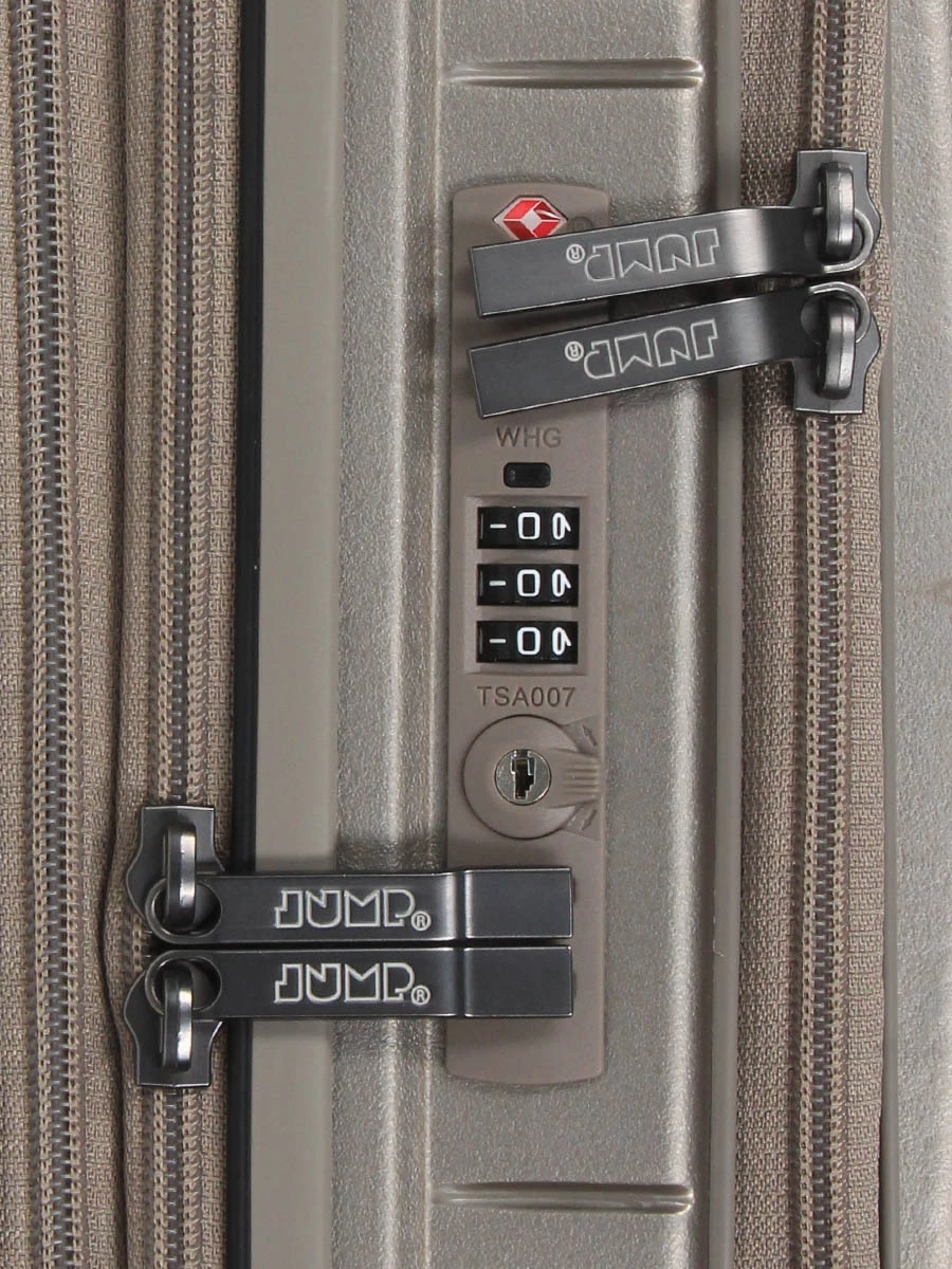 La valise cabine Jump Sondo est dotée de quatre doubles roues solides et multidirectionnelles qui assurent une glisse fluide. Grâce à leur revêtement en gomme, elles offrent un roulement silencieux. Le trolley à double tube se règle sur quatre positions pour s’ajuster au mieux à la taille de l’utilisateur. Pour soulever la valise à la main de façon confortable, on utilise sa poignée haute ergonomique. Côté sécurité également les dispositifs de fermeture sont conçus avec soin : les compartiments comme la poche frontale se ferment à l’aide d’un zip dont les curseurs se bloquent par une serrure TSA à code. Cette dernière peut être ouverte à l’aide d’un passe par les douaniers aéroportuaires.