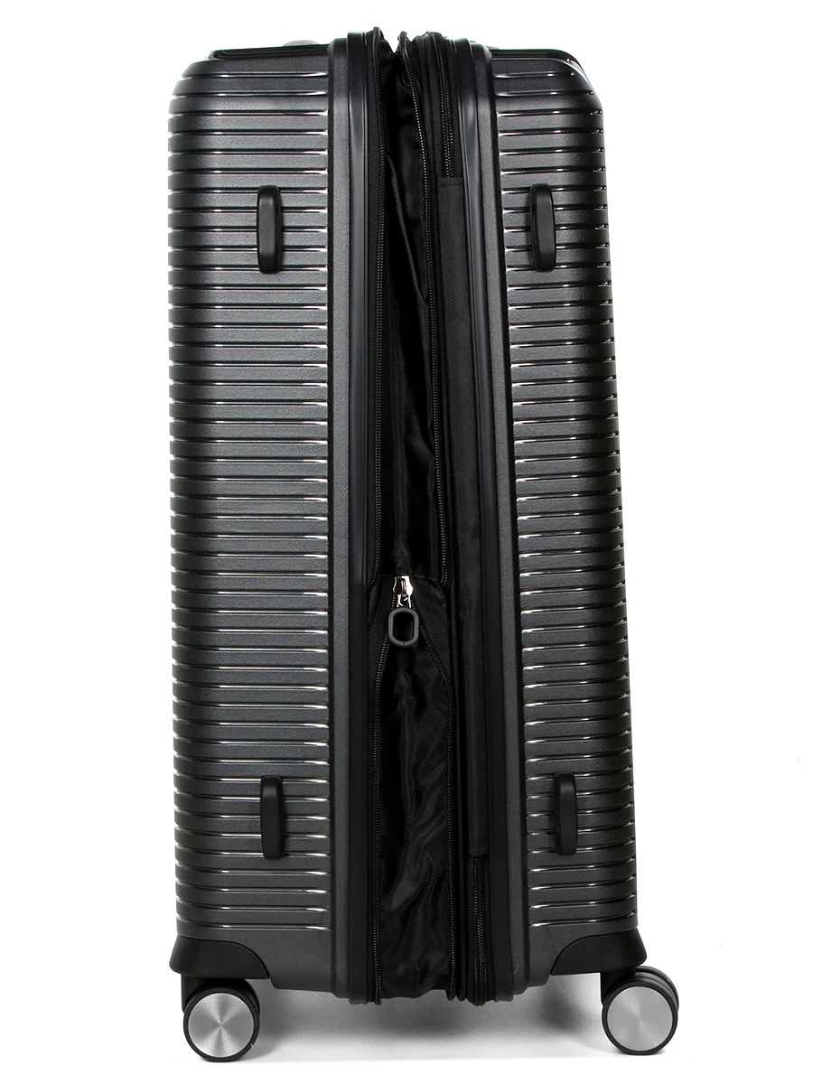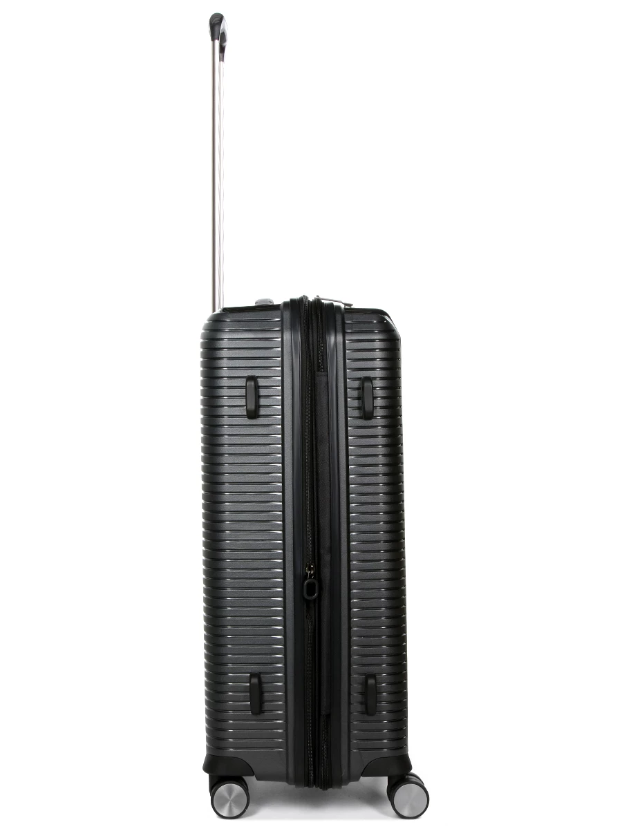 La valise Jump Sondo 66 cm ne fait aucune concession entre robustesse, maniabilité et allure élégante. Sa coque en polypropylène est déclinée dans différents coloris raffinés pouvant convenir aux goûts et aux préférences de chacun. Avec sa capacité de 63 L, elle convient pour des séjours de moins de 3 semaines. Pas de panique, si l’on vient à manquer de place, il suffit de dézipper son soufflet pour libérer un espace de stockage de 9 L supplémentaires ! Un système de roulage fluide et un agencement astucieux sont également au rendez-vous pour des déplacements placés sous le signe du confort et de l’organisation.