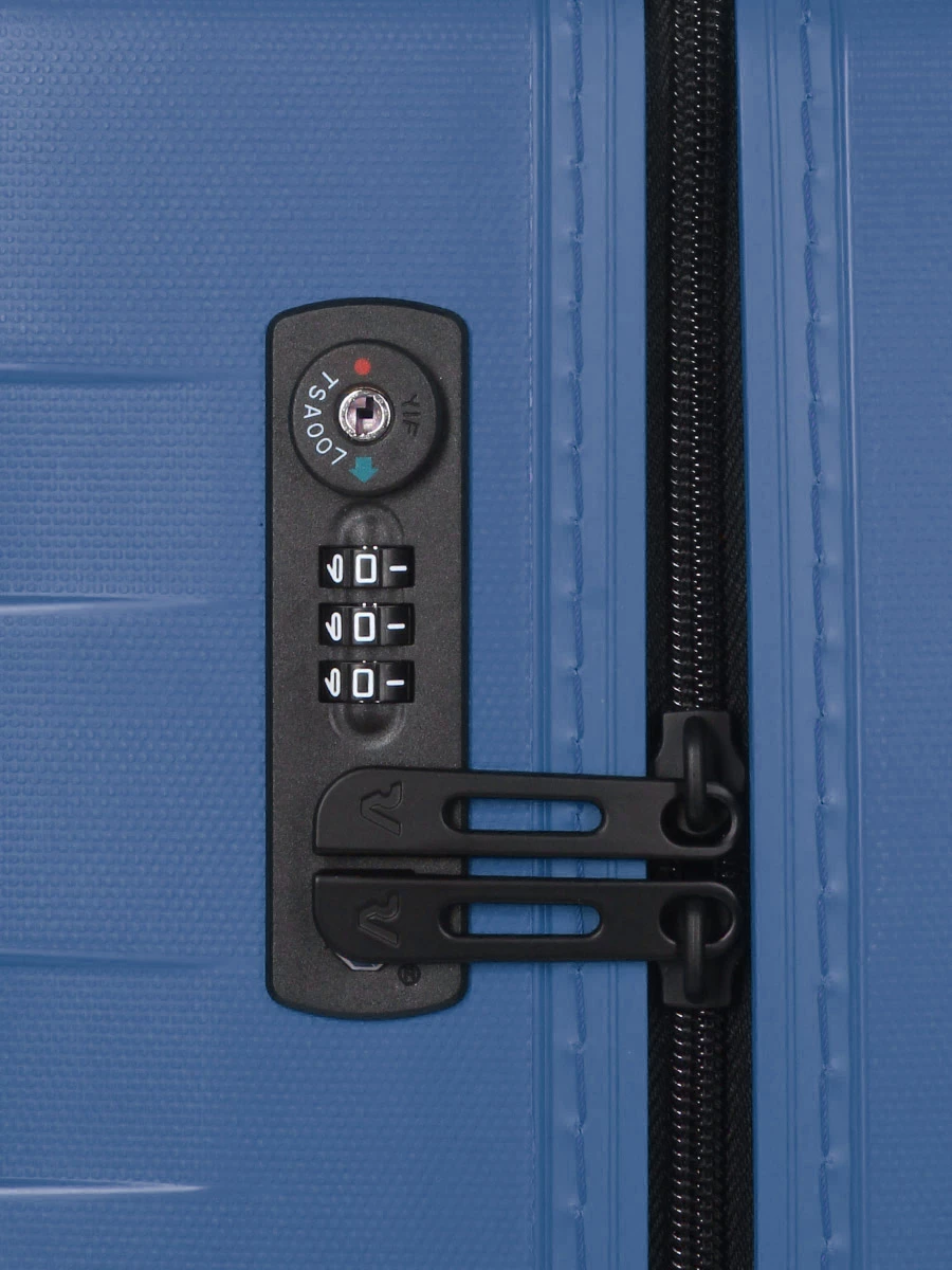 La valise Roncato Box Sport 2.0 se déplace sans effort, en la faisant rouler verticalement à ses côtés à l’aide de son trolley à double tube qui se règle sur deux positions. Ses quatre roues sont multidirectionnelles, ce qui leur permet de s’adapter aux irrégularités du terrain. Parce qu’il faut parfois soulever la valise à la main, des poignées ergonomiques sont disposées en haut et sur le côté de la valise. Pratique notamment pour les déplacements en avion vers les États-Unis, la serrure TSA à code sécurise la fermeture à glissière sans empêcher son ouverture par les agents aéroportuaires. Pour se protéger dans les transports en commun, un masque en tissu lavable et sa pochette de rangement sont fournis.