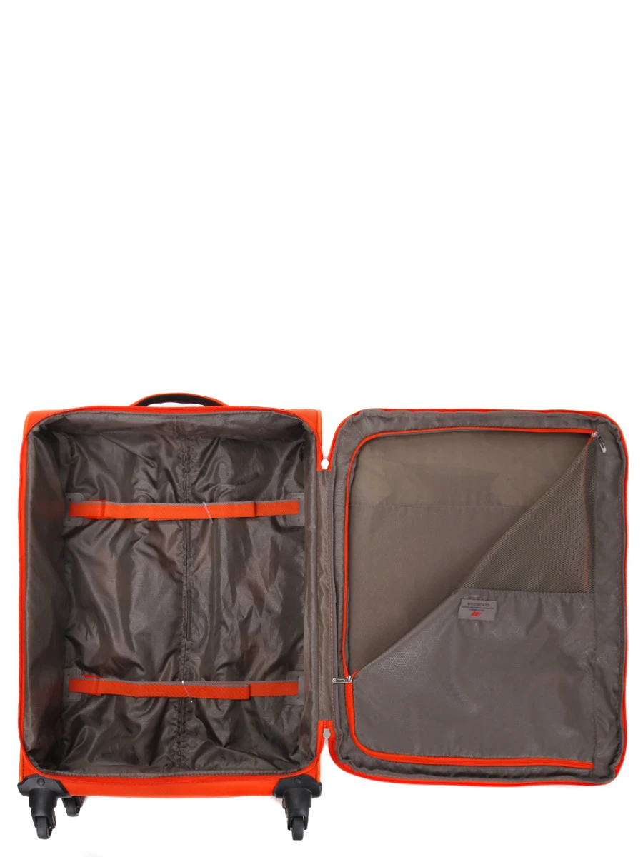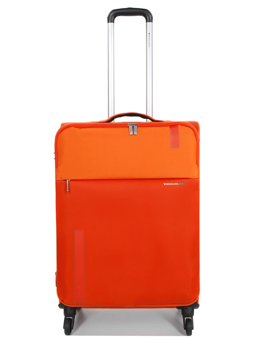 La valise extensible 4 roues Roncato Speed est dotée de deux compartiments séparés par une cloison zippée souple. Le compartiment supérieur est parfait pour séparer les sous-vêtements du reste des habits qui trouvent alors leur place dans le grand compartiment inférieur. Celui-ci comporte en outre quatre sangles ajustables pour maintenir les tenues si soigneusement pliées. Sur l’extérieur, une petite poche frontale semble parfaite pour un petit kit de toilette à utiliser pendant les correspondances. En dessous, une seconde poche, plus grande, peut accueillir plusieurs livres ou le reste du nécessaire de toilette par exemple.