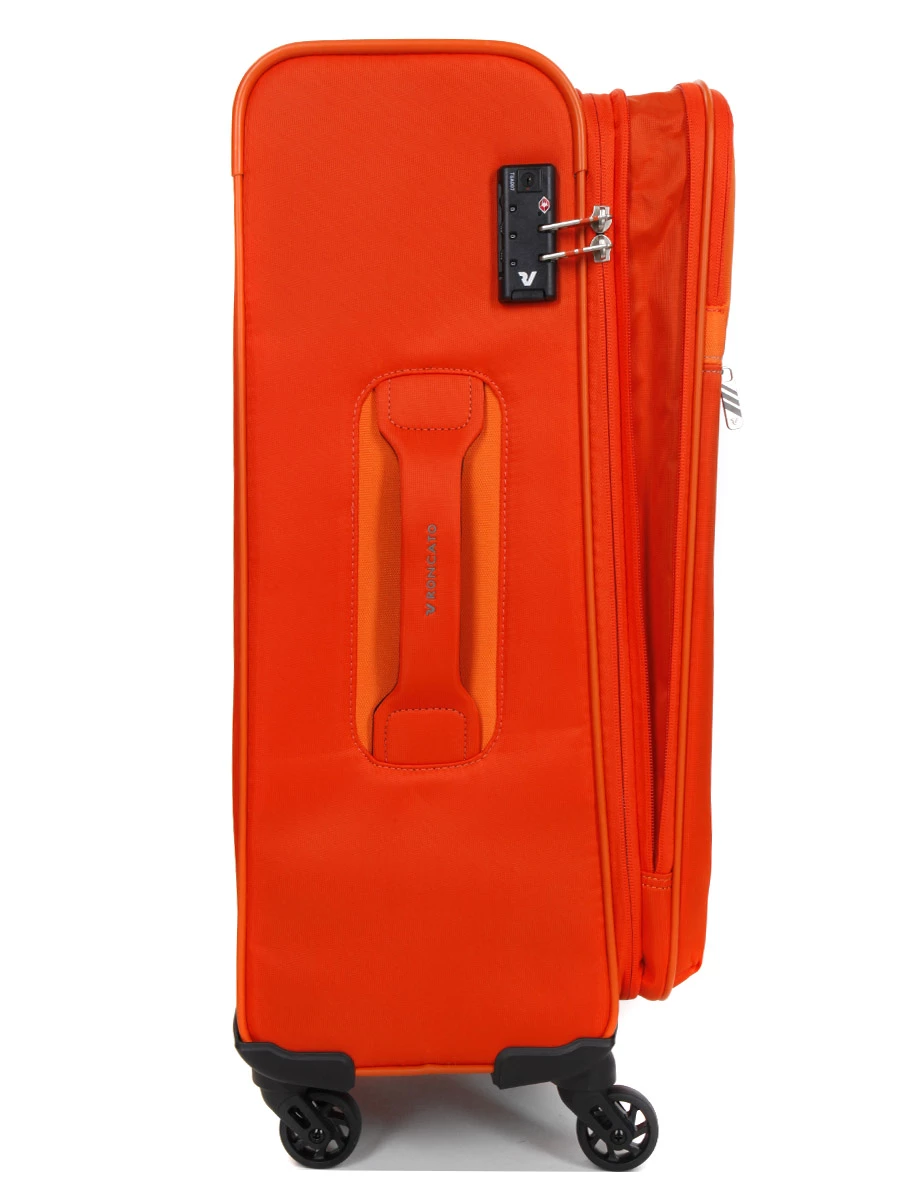 La valise extensible Roncato Speed est équipée d’une serrure TSA à code pour sécuriser son contenu simplement et faciliter les contrôles douaniers, évitant ainsi que la valise ne soit abîmée. Toujours pour préserver son intégrité, elle est munie d’un patin de protection sur l’arrière, utile notamment lorsqu’elle franchit un trottoir. Ses 4 roues doubles et son trolley double tube la rendent facilement maniable qu’elle soit tractée à l’arrière, ou à côté de soi. Quand le moment vient de la poser sur le tapis d’enregistrement, les deux poignées de portage rembourrées sont particulièrement appréciables.