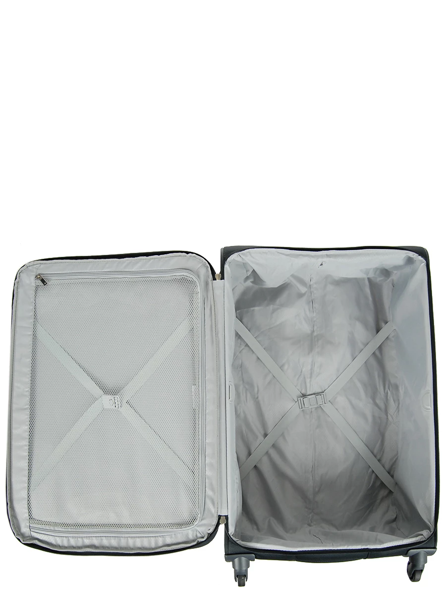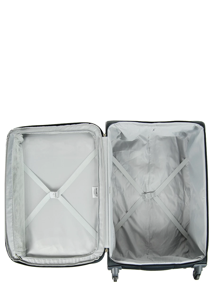 La valise extensible Samsonite Base Boost bénéficie d’une grande capacité de contenance de 105 L. Grâce à son soufflet d’extension, elle peut gagner encore 7 L de volume en plus (pour atteindre 112.5 L !). De plus, son organisation intérieure permet un rangement ordonné des vêtements. Elle est, en effet, munie d’une pochette zippée pour les ceintures, bijoux et autres accessoires, de sangles élastiques croisées pour garder les habits bien pliés, d’une cloison de séparation zippée pour éviter que le contenu de son compartiment plat se déverse une fois la valise ouverte et d’une doublure protectrice.
