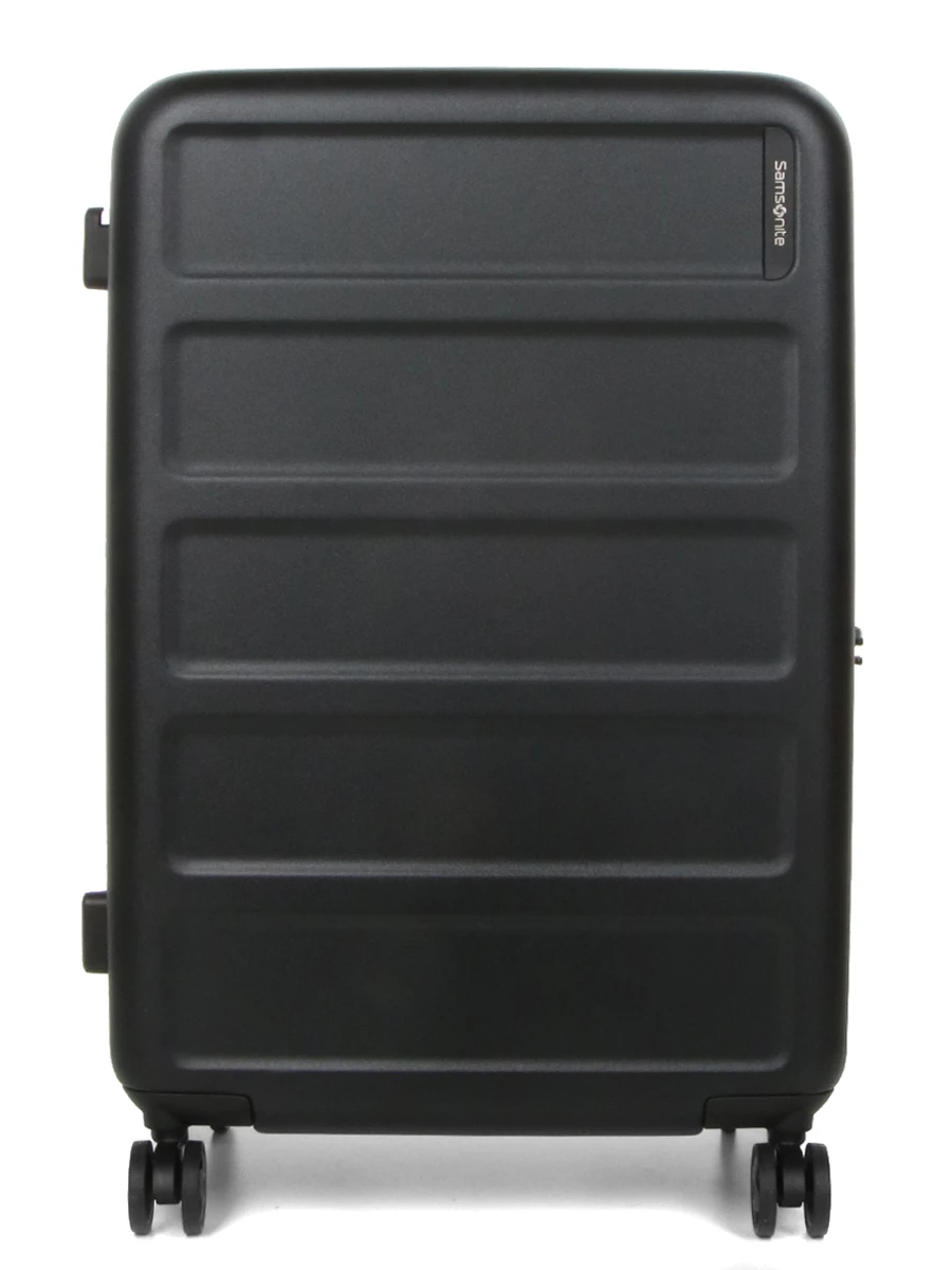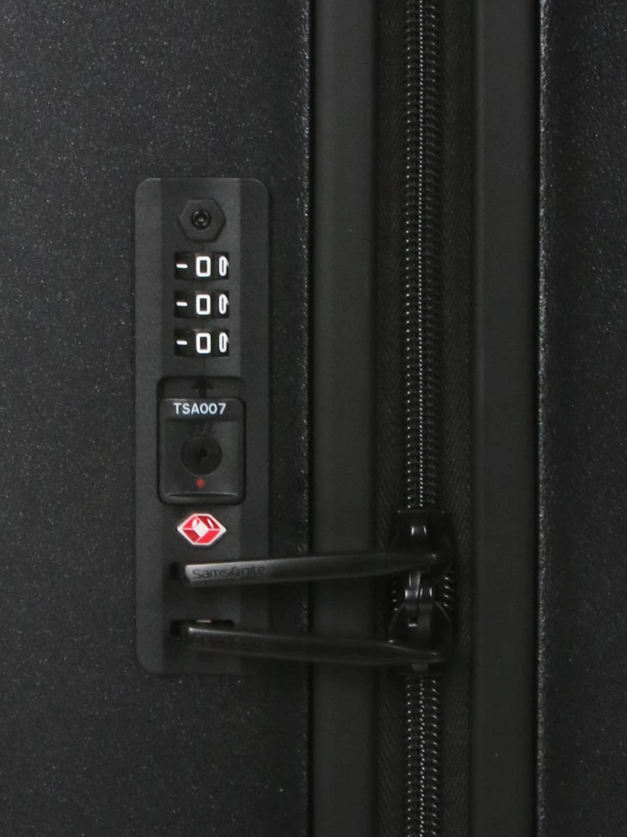 La valise Samsonite Quadrix se tracte du bout des doigts avec ses 4 doubles roues multidirectionnelles et sa poignée télescopique double canne. Elle peut ainsi filer à vos côtés ou derrière vous sans difficulté. Pour une prise en main aisée, notamment pour la déposer sur un rack à bagages, elle est munies de 2 larges poignées souples et douces au toucher. Sur le côté, une serrure TSA à code permet de verrouiller l’accès à son contenu. A l’arrière, un petit porte étiquette permet quant à lui de laisser accessible ses coordonnées de contact.