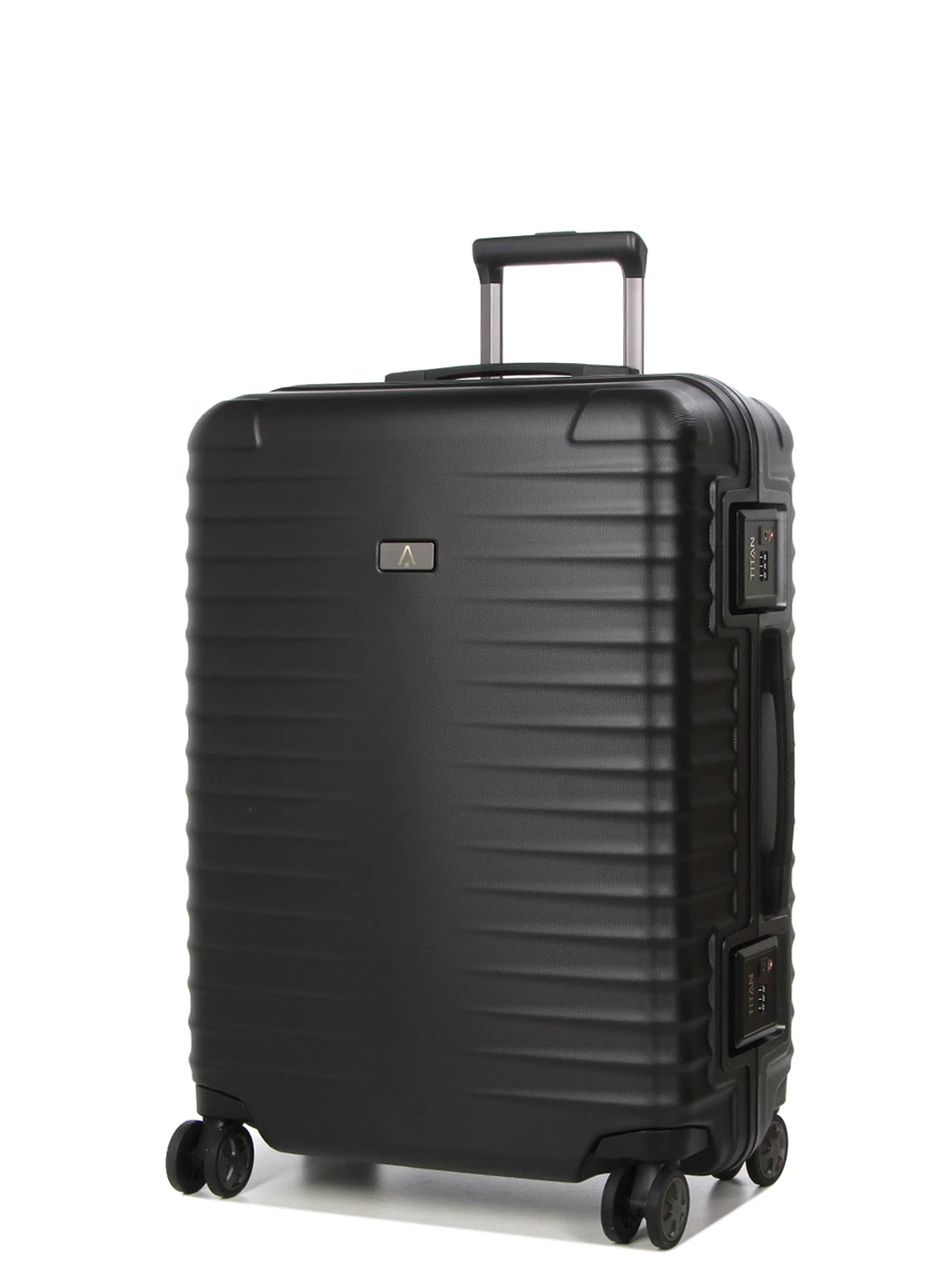 La valise Titan Litron Frame M 69 cm s’inscrit dans une démarche de production faisant rimer éco-responsabilité et durabilité. Sa coque au design moderne et élégant est le fruit d’une fabrication réalisée en Allemagne à partir de polycarbonate pur produit en Autriche pour une empreinte carbone de production plus douce. Ce matériau de grande qualité lui confère une excellente robustesse. Elle bénéficie d’ailleurs d’une garantie de 5 ans en gage de sa fiabilité. Sa capacité de 84 L convient pour des séjours d’une quinzaine de jours. Glisse fluide et silencieuse et agencement bien pensé sont également de mise pour des départs en vacances placés sous le signe du confort et de l’organisation.