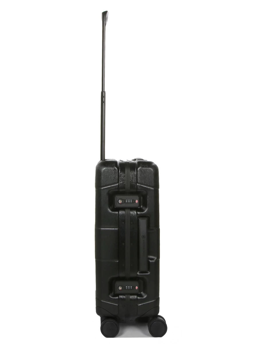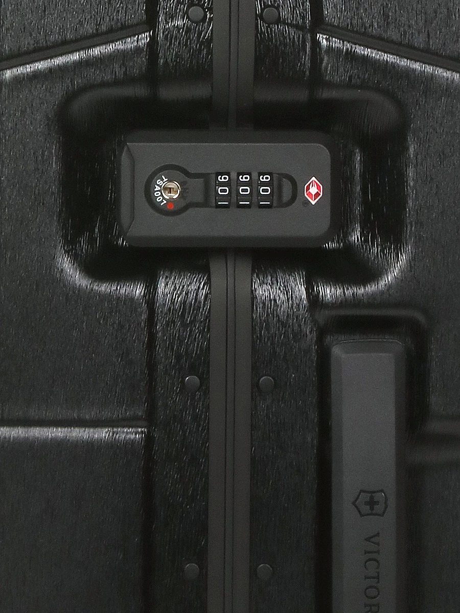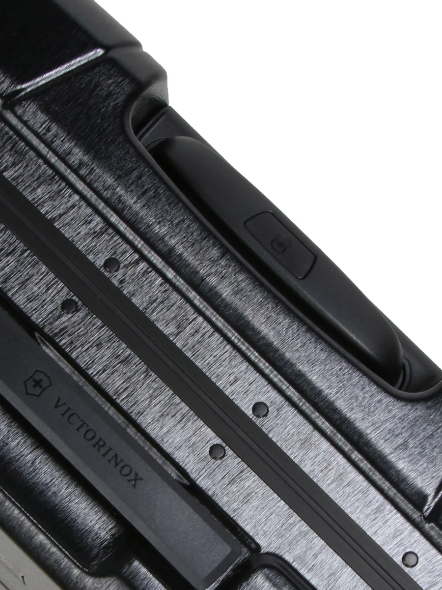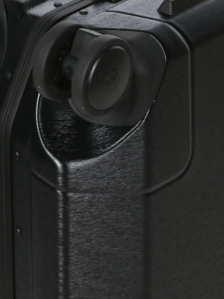 La valise Victorinox Lexicon Framed Series Global glisse avec douceur sur ses 4 doubles roues Hinomoto à pneumatiques silencieuses Lisof. Ses larges roues permettent de la tracter avec fluidité aussi bien sur les sols lisses des longs couloirs d’aéroport que dans les rues pavées d’un centre ville. Pour une bonne prise en main, elle est dotée en prime d’une poignée télescopique double canne de conception Suisse alliant ergonomie et stabilité. Dessus et sur le côté, 2 poignées souples complètent le tout.