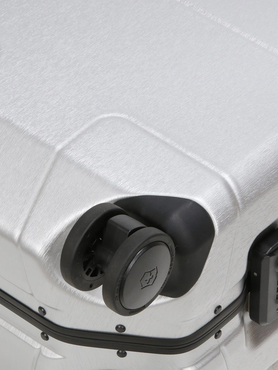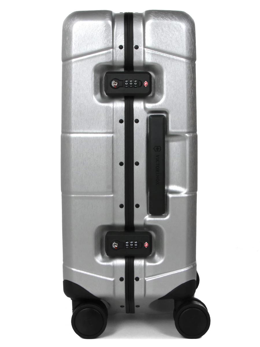 La valise cabine Victorinox Lexicon Framed Series Slim est montée sur 4 doubles roues Hinomoto à pneumatiques silencieuses Lisof et équipée d’une poignée télescopique double canne à position réglable de conception Suisse. Son trolley offre ainsi une très bonne prise en main et une stabilité accrue. Il est ainsi facile de faire glisser cette valise silencieusement derrière ou à côté de soi. Ses 2 poignées de portage permettent de la tenir fermement pour franchir une volée de marches. Ses 2 serrures TSA à code permettent quant à elles un verrouillage simple et rapide. Enfin, pour l’entreposer avec soin entre 2 voyages, il suffit de la glisser dans sa housse de rangement avant de la déposer dans un placard.