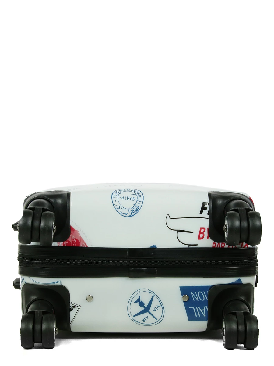 La valise Worldline Freetown Stamps 54 cm dispose d’un style original grâce à ses imprimés mettant en scène des tampons de voyages. Résistante grâce à sa coque en ABS et polycarbonate et ses renforts de protection latéraux, elle est idéale pour voyager le temps d’un week-end ou à bord des cabines d’avions tout en protégeant correctement ses affaires. Son format est d’ailleurs compatible avec les normes cabine des compagnies low cost (Ryanair et EasyJet).